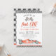 Invitation pour le 1er anniversaire de Fast One Race Car Thème voiture de course Invitation pour le 1er anniversaire de voiture de course Fête de voiture de course Rouge Rétro Vintage