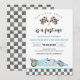 Faites vrombir les moteurs pour une célébration épique avec cette invitation pour un premier anniversaire sur le thème de la voiture de course "Fast One". Avec son esthétique élégante et vintage de course automobile, ses damiers audacieux et ses couleurs vives, c'est le moyen idéal de donner le ton pour le grand jour de votre petit pilote. Ce modèle facilement personnalisable vous permet d'ajouter rapidement les détails de votre fête, assurant un démarrage en trombe pour l'organisation de votre événement. Idéal pour le premier anniversaire de votre garçon ou pour une fête sur le thème des courses automobiles !