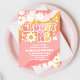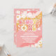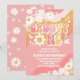 Célébrez la journée spéciale de vos petits avec cette invitation pour un premier anniversaire rétro et funky ! Avec des rayures ondulées rose, orange et jaune, des marguerites ludiques, des signes de paix, des cœurs et des étoiles, ce design joyeux capture l'amusement des années 70. La police fantaisiste et les couleurs vives en font un choix parfait pour une fête sur le thème bohème, hippie ou flower power. Facilement personnalisable avec les détails de votre fête, cette invitation donne le ton pour une célébration joyeuse et inoubliable.