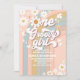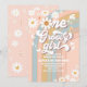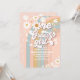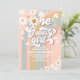 Célébrez le grand jour de votre petit bout avec cette invitation rétro pour un premier anniversaire, ornée de rayures pastel arc-en-ciel, de marguerites joyeuses, de papillons, d'étoiles et de cœurs. Parfaite pour un thème de fête inspiré des années 1970, ce design coloré donne le ton pour la paix, l'amour et le plaisir. Personnalisez avec le nom de votre enfant, les détails de la fête et les informations de RSVP pour créer un souvenir unique. Idéale pour l'anniversaire des filles, cette invitation vibrante de style bohème ajoute du charme et de la nostalgie à votre célébration.
