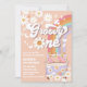 Célébrez le premier anniversaire de vos petits avec cette invitation rétro pour un 1er anniversaire ! Avec un fond pêche et des marguerites joyeuses, des papillons, des arcs-en-ciel et une camionnette flower power, ce design capture l'esprit amusant et libre des années 60. Parfait pour un thème de fête groovy, cette carte personnalisable permet de partager facilement les détails de l'événement avec la famille et les amis. Ajoutez le nom de votre enfant et les informations sur la fête pour créer un souvenir unique qui diffuse la paix, l'amour et la joie.