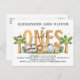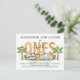 Carte postale d'invitation pour le 1er anniversaire de jumeaux Safari Wild Ones. Pour personnaliser, tapez le texte à la place de l'exemple dans le champ d'édition ci-dessus à droite. Vous pouvez également modifier la police et la couleur et la taille de la police si vous le souhaitez.
