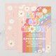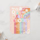 Célébrez la journée spéciale de vos petits avec cette invitation d'anniversaire rétro arc-en-ciel groovy ! Avec des couleurs pastel, des lettres à bulles ludiques et des motifs amusants comme des fleurs, des étoiles et des signes de paix, ce design apporte la paix, l'amour et la joie à la fête. Parfait pour une célébration de premier anniversaire, cette invitation vibrante inspirée du style bohème donne le ton pour une réunion amusante et festive. Personnalisez-la avec le nom de votre enfant, les détails de la fête et faites-en un souvenir que vos invités adoreront.