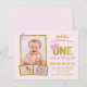 Invitation amusante rose et or ONE pour le premier anniversaire !