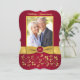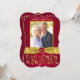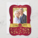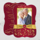 Cette élégante invitation de photo d'anniversaire de mariage de 50 ans avec des fleurs rouges et dorées sur fond cramoisi avec des volutes comporte un ruban doré IMPRIMÉ et un médaillon rouge et doré faux-gravé IMPRIMÉ. Il comporte une zone de modèle pour que vous puissiez télécharger votre propre photo numérique. Vous pouvez supprimer le texte stylisé en cursive "Anniversaire de mariage" ou "50ème". Tout le texte est personnalisable, ainsi que les choix de papier. AUSSI, si vous changez de police ou de taille de police, votre texte risque de ne plus convenir correctement. Zazzle ne modifiera rien pour les fautes de frappe, l'alignement ou autre, et je ne verrai pas votre invitation. Tout sera imprimé tel qu'il apparaît sur votre moniteur. Si vous avez besoin d'aide pour l'invitation, veuillez me contacter AVANT de la commander. Cette invitation est conçue pour s'adapter à la carte de forme incurvée de taille 5x7. Si vous changez pour une autre taille/forme, le design ne conviendra plus correctement, donc si