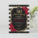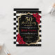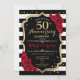 Design élégant noir blanc rouge avec faux brillant. Rayures noires et blanches avec roses rouges. Parfait pour une fête élégante.