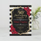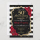 Design élégant noir blanc rouge avec faux brillant. Rayures noires et blanches avec roses rouges. Parfait pour une fête élégante.