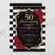 Design élégant noir blanc rouge avec faux brillant. Rayures noires et blanches avec roses rouges. Parfait pour une fête élégante.