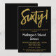 Une invitation élégante, simple mais frappante de couleur noire et or pour une fête d'anniversaire de mariage de 60 ans. Texte de script glamour en haut et texte doré en bas avec le nom en blanc qui ressort