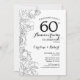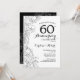 Invitation pour la fête d'anniversaire de mariage de 60 ans, Floral Noir et Blanc. Design moderne minimaliste avec des dessins de contours botaniques et une typographie en police script. Carte d'invitation élégante parfaite pour une célébration stylée. Peut être personnalisée pour n'importe quelle année de mariage. Cartes d'invitation imprimées sur Zazzle ou modèle de template numérique imprimable instantanément.