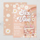 Célébrez la journée spéciale de votre enfant avec cette invitation d'anniversaire rétro arc-en-ciel présentant un design inspiré des années 1960. Le fond arc-en-ciel pastel est décoré de marguerites, d'étoiles, de papillons et d'un van signe de la paix, créant une ambiance vintage amusante. Parfait pour une fête d'anniversaire de 6 ans, cette invitation ludique donne le ton pour la paix, l'amour et la joie. Personnalisez avec les détails de votre fête pour la rendre unique et ravissez vos invités avec un design nostalgique et moderne.