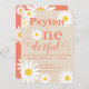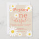Des marguerites blanches et lumineuses ornent cette mignonne invitation au premier anniversaire du bébé. Parfait pour votre petite fille précieuse, cette carte colorée présente des marguerites blanches parsemées de corail ou de typographie saumon avec un thème ONE-derful. Le dos de la carte présente la même couleur corail ou saumon avec marguerites blanches. Personnalisez le nom et les détails de la fête. Ce design fantaisiste est disponible sur les articles de fête d'anniversaire correspondants.