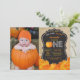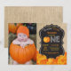 Invitation pour le premier anniversaire de citrouille avec photo personnalisée, fond orange et toile de jute. Pour une personnalisation plus poussée, veuillez cliquer sur le bouton "Personnaliser" et utiliser notre outil de conception pour modifier ce modèle.