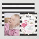 Invitation pour le premier anniversaire avec photo personnalisée. Invitation pour l'anniversaire d'une fille. Paillettes noires, roses et dorées. Invitation pour une fête sur le thème des flamants roses. Rayures noires et blanches. Numérique imprimable. Pour une personnalisation plus poussée, veuillez cliquer sur le bouton "Personnaliser" et utiliser notre outil de conception pour modifier ce modèle.
