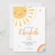 Invitation pour le premier anniversaire aquarelle soleil et arc-en-ciel bohème - Illustration bohème mignonne d'arc-en-ciel et de soleil aquarelle “un” - invitation premier anniversaire mixte