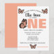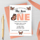 Célébrez le grand événement de votre petit papillon avec cette invitation douce et moderne pour son premier anniversaire ! Avec ses papillons aux tons pêche et rose, sa typographie ludique et la phrase adorable « Notre première année s'est envolée », ce design est parfait pour une fête d'anniversaire de fille printanière ou estivale.
