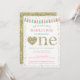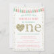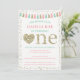 Cette invitation prépare le terrain pour une belle fête de premier anniversaire avec sa palette de couleurs rose, menthe et paillettes dorées fausses. Imprimez avec une finition semi-brillante ou nacrée pour faire ressortir les paillettes fausses !