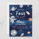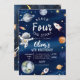 Préparez-vous à décoller pour une célébration stellaire avec cette invitation pour le quatrième anniversaire sur le thème de l'espace extra-atmosphérique ! Tendez la main vers les étoiles et faites vivre la galaxie avec ce design hors du commun mettant en vedette les astronautes et l'exploration spatiale. Cette invitation est parfaite pour le jour spécial de votre petit. Commencez le compte à rebours pour une fête d'anniversaire inoubliable qui est vraiment hors de ce monde !