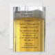 Invitation personnalisée et amusante pour l'enterrement de vie de garçon avec une photographie d'un verre de bière en arrière-plan. Le texte en noir est entièrement personnalisable et prêt à être personnalisé pour votre soirée entre hommes.