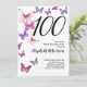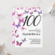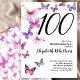 Cette invitation jolie et fantaisiste pour les 100 ans est parfaite pour une belle fête et donnera un ton amusant et de célébration. Ce design présente des papillons roses et violets, et est un choix féminin agréable pour un événement spécial pour célébrer un anniversaire marquant. Personnalisez pour votre propre année d'anniversaire, et recherchez "100" dans ma boutique pour voir les designs coordonnés.