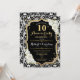 Design élégant rustique avec damassé noir et blanc, or scintillant faux, police de caractère script et roses blanches.