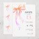 Rendez le jour spécial de votre adolescent encore plus mémorable avec notre invitation d'anniversaire 13 ans présentant un magnifique design à ruban rose. Cette invitation élégante et raffinée est un modèle éditable que vous pouvez personnaliser facilement, ce qui la rend parfaite pour la fête d'anniversaire d'une jeune fille de 13 ans. Avec son style minimaliste et son élément de coquette à l'aquarelle charmant, cette invitation est non seulement visuellement attrayante mais également pratique, vous permettant d'envoyer une invitation avec un ruban rose élégant en quelques clics. Choisissez notre carte imprimable pour vous assurer que chaque détail se démarque lorsque vous invitez vos amis et votre famille à se joindre aux festivités. Célébrez son entrée dans l'adolescence avec une invitation époustouflante.