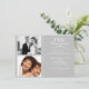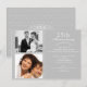 Cette invitation pour les 25 ans de mariage argentés présente un motif damassé embossé sur une partie du design et dispose d'espace pour deux photos. Le design comprend également un motif de fioriture blanche au-dessus de la zone de texte. Le verso de l'invitation est principalement constitué du motif damassé et comporte une zone ovale pour le texte. Cette invitation convient pour un 25ème anniversaire de mariage.