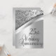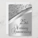 Élégantes invitations pour une réception / fête des 25 ans de mariage. Avant et arrière en argent avec texte noir au dos donnant un look élégant à cette invitation d'anniversaire unique.