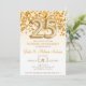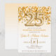 Ceci est une invitation pour une fête d'anniversaire de mariage de 25 ans avec un thème de confettis et de paillettes dorées. 25