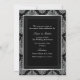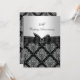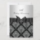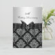 Invitation d'anniversaire. Damassé argenté et noir avec un nœud noir orné de bijoux. Exclusivité Zazzle. Personnalisez avec vos propres détails. NOTEZ TOUTES les images plates ! Elles ne contiennent PAS de vrais nœuds, diamants ou bijoux !!