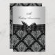 Invitation d'anniversaire. Damask argenté et noir avec noeud noir orné de bijoux. Exclusivité Zazzle. Personnalisez avec vos propres détails. NOTEZ TOUTES les images plates ! Elles ne contiennent PAS de vrais noeuds, diamants ou bijoux !!