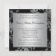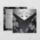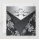 Cette invitation d'anniversaire de mariage de 25 ans au look brocart floral noir et argent élégant a des rabats noirs qui sont IMPRIMÉS pour donner l'impression qu'ils sont ouverts. Elle comporte un rouleau noir décoratif sur le devant, ainsi que des mots élégants qui disent "25e anniversaire de mariage". Vous pouvez les retirer si vous voulez ajouter votre propre texte. Elle aurait particulièrement fière allure sur le papier métallisé glace. L'invitation est entièrement personnalisable. Si vous avez besoin de produits assortis, veuillez envoyer un courriel à niteowlstudio@gmail.com avec votre demande.