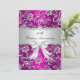 Invitation d'anniversaire. Fleurs argent et rose avec ruban à bijou blanc. Exclusif Zazzle. Personnalisez avec vos propres détails. NOTEZ TOUTES les images plates ! Elles ne contiennent PAS de vrais rubans, diamants ou bijoux !!