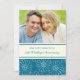 Carte d'invitation pour une fête d'anniversaire de mariage de 25 ans dans un élégant motif floral bleu paon sarcelle et blanc cassé, délicat et formel. Personnalisable avec les détails de votre fête et votre propre photo.