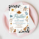 Mettez-vous en selle pour une célébration pleine de plaisir avec cette invitation de fête d'anniversaire sur le thème du rodéo western pour un 2ème anniversaire ! Avec des chapeaux de cow-boy, des bottes, des fers à cheval, des cactus, des guitares et un badge de shérif sur un fond imprimé vache audacieux, ce design capture parfaitement l'esprit du Far West. Les polices ludiques et les illustrations rustiques en font un choix idéal pour les petits cow-boys et cow-girls. Personnalisez facilement avec les détails de votre fête et créez un souvenir mémorable pour les invités. Parfait pour les fêtes d'anniversaire sur le thème du rodéo, de l'ouest ou de la campagne.