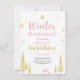 Célébrez un jour spécial avec cette invitation pour un 2ème anniversaire sur le thème de la merveilleuse forêt d'hiver ! Ce design présente des graphismes de cerf mignon et de flocons de neige avec un thème de couleur paillettes rose et or. Vous pouvez ajouter la couleur de fond de votre choix.