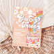 Célébrez le jour spécial de vos petits avec cette invitation de fête d'anniversaire "Groovy Three" inspirée du rétro. Avec un fond pêche orné de marguerites, de cœurs, de papillons et d'un arc-en-ciel, ce design capture l'esprit amusant et libre des années 1960. Un van vintage rose avec des fleurs et un signe de paix ajoute une touche ludique, ce qui le rend parfait pour une célébration sur le thème bohème ou hippie. Personnalisez-le avec le nom de votre enfant, les détails de la fête et créez un souvenir que les invités adoreront. Idéale pour les anniversaires de tout-petits, cette invitation mélange nostalgie et charme moderne pour rendre votre événement inoubliable.