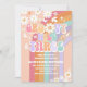Célébrez la journée spéciale de vos petits avec cette invitation groovy rétro pour un 3ème anniversaire ! Avec des couleurs pastel arc-en-ciel, des marguerites, des papillons, des signes de paix et des polices ludiques, ce design capture l'esprit amusant et insouciant des années 70. Parfait pour une fête bohème ou rétro, cette invitation personnalisable permet de partager facilement tous les détails avec la famille et les amis. Ajoutez le nom de votre enfant, la date de la fête et les informations de RSVP pour un souvenir unique qui donne le ton pour une célébration joyeuse.