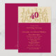 Invitation moderne et accrocheuse pour l'anniversaire de mariage. Idéal pour célébrer avec style 40 ans de mariage. Caractéristiques : un grand numéro 40 de couleur rubis, qui est la couleur traditionnelle pour cet anniversaire. Les autres nombres sont affichés dans une couleur plus claire pour symboliser les années passées. Invitation parfaite pour célébrer ce jalon d'anniversaire à la maison, dans un restaurant ou dans un lieu préféré. Design intemporel et élégant. Ajoutez votre propre texte.