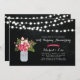 Une invitation d'anniversaire de mariage rustique élégante avec un bouquet de fleurs et un pot mason sur fond de tableau noir.