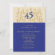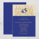 Invitation moderne et accrocheuse pour anniversaire de mariage. Idéal pour célébrer un 45ème anniversaire de mariage avec style. Caractérisé par un grand numéro 45 de couleur Saphir, qui est la couleur traditionnelle pour cet anniversaire. Les autres numéros sont affichés dans une couleur plus claire pour symboliser les années passées. Invitation parfaite pour célébrer cet anniversaire marquant à la maison, dans un restaurant ou lieu préféré. Design intemporel et élégant. Ajoutez votre propre texte.