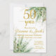 50 ans mérite une célébration ! Cette invitation présente de beaux accents d'eucalyptus et d'or. Tout le texte est modifiable (sauf le nombre 50 et le mot ans).