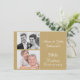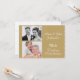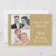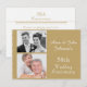 Cette invitation pour les 50 ans de mariage comporte un fond de couleur or et une fine décoration en dentelle sur les côtés ainsi que deux zones pour les photos du couple. Le dos est blanc avec une fine décoration en dentelle dorée. Il est prêt à être personnalisé et convient pour une célébration des 50 ans de mariage.