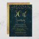 Cette invitation élégante pour les 50 ans de mariage est simple mais élégante. Elle présente un titre en calligraphie dorée imitation et un motif de points aléatoires en haut de l'invitation. Le fond est une image texturée bleu foncé et le dos de l'invitation est une texture pailletée dorée imitation. Cette invitation élégante en calligraphie dorée imitation pour les 50 ans de mariage est prête à être personnalisée. Pour des variations de ce design, veuillez visiter la boutique.