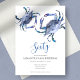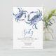 Dites à une Belle la fête de crabe côtier Faites encadrer les détails de votre événement avec une bordure supérieure de crabes à l'aquarelle bleue. Un bleu assorti orne le dos de votre invitation. Un choix chic et balnéaire mais moderne pour votre fête d'anniversaire ou fête de plage. Les mots peuvent être changés pour lire 50e, 70e, 80e, À 60 Ans ou ce que vous voulez. Pour voir plus de conceptions d'invitations de fête d'anniversaire adulte par Victoria Grigaliunas visitez www.zazzle.com/dotellabelle