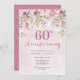 Jolie invitation traditionnelle pour les 60 ans de mariage avec de belles roses roses et magnolia et un fond à motif simple.