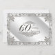 Une conception d'images Digitalbcon présentant une couleur argent platine et un thème de conception flourish avec une variété d'images, de formes, de motifs, de styles et de polices personnalisés dans cette invitation de carte anniversaire de mariage diamant 60 ans unique en son genre. Cette carte d'invitation élégante et attrayante est livrée avec une conception complémentaire au verso et des lettrages de texte personnalisés pour convenir à votre occasion spéciale.