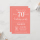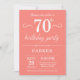 Invitation pour les 70 ans avec fond corail. Anniversaire adulte. Invitation d'anniversaire pour homme ou femme. 13 15 16 18 20 21 30 40 50 60 70 80 90 100 ans, tout âge. Pour une personnalisation plus poussée, veuillez cliquer sur le bouton "Personnaliser" et utiliser notre outil de conception pour modifier ce modèle.
