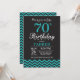 Invitation pour les 70 ans avec Chevron noir et sarcelle. Tableau noir. Anniversaire adulte. Invitation d'anniversaire pour homme ou femme. Pour une personnalisation plus poussée, veuillez cliquer sur le bouton "Personnaliser" et utiliser notre outil de conception pour modifier ce modèle.