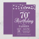 Invitation pour les 70 ans avec des guirlandes lumineuses. Fond violet lavande lilas. Femme élégante moderne. 13ème 15ème 16ème 18ème 20ème 21ème 30ème 40ème 50ème 60ème 70ème 80ème 90ème 100ème, Tout âge. Pour une personnalisation supplémentaire, veuillez cliquer sur le bouton "Personnaliser" et utiliser notre outil de conception pour modifier ce modèle.